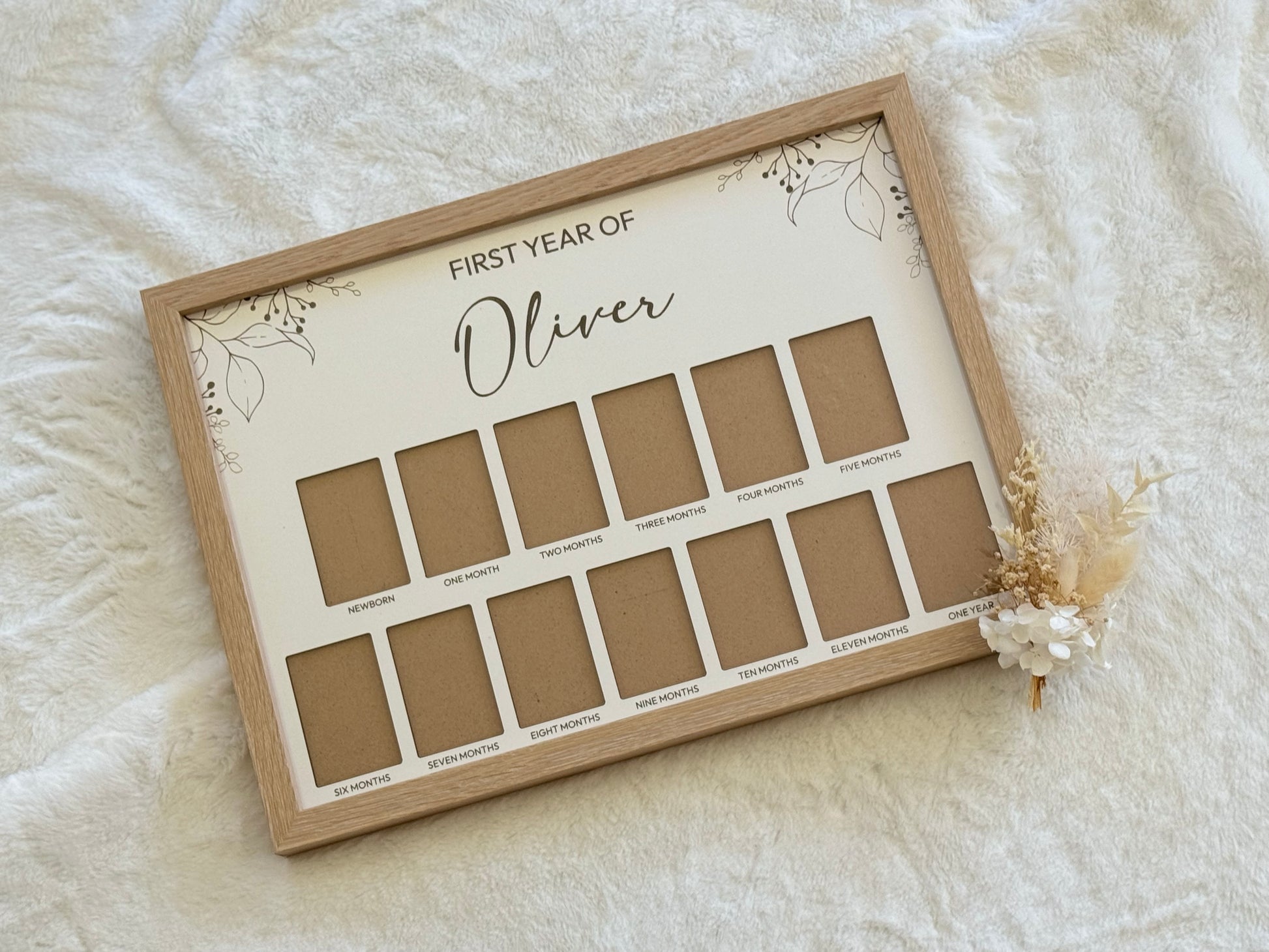 Each frame holds 12 2x3" photos, starting from one month up to one year.