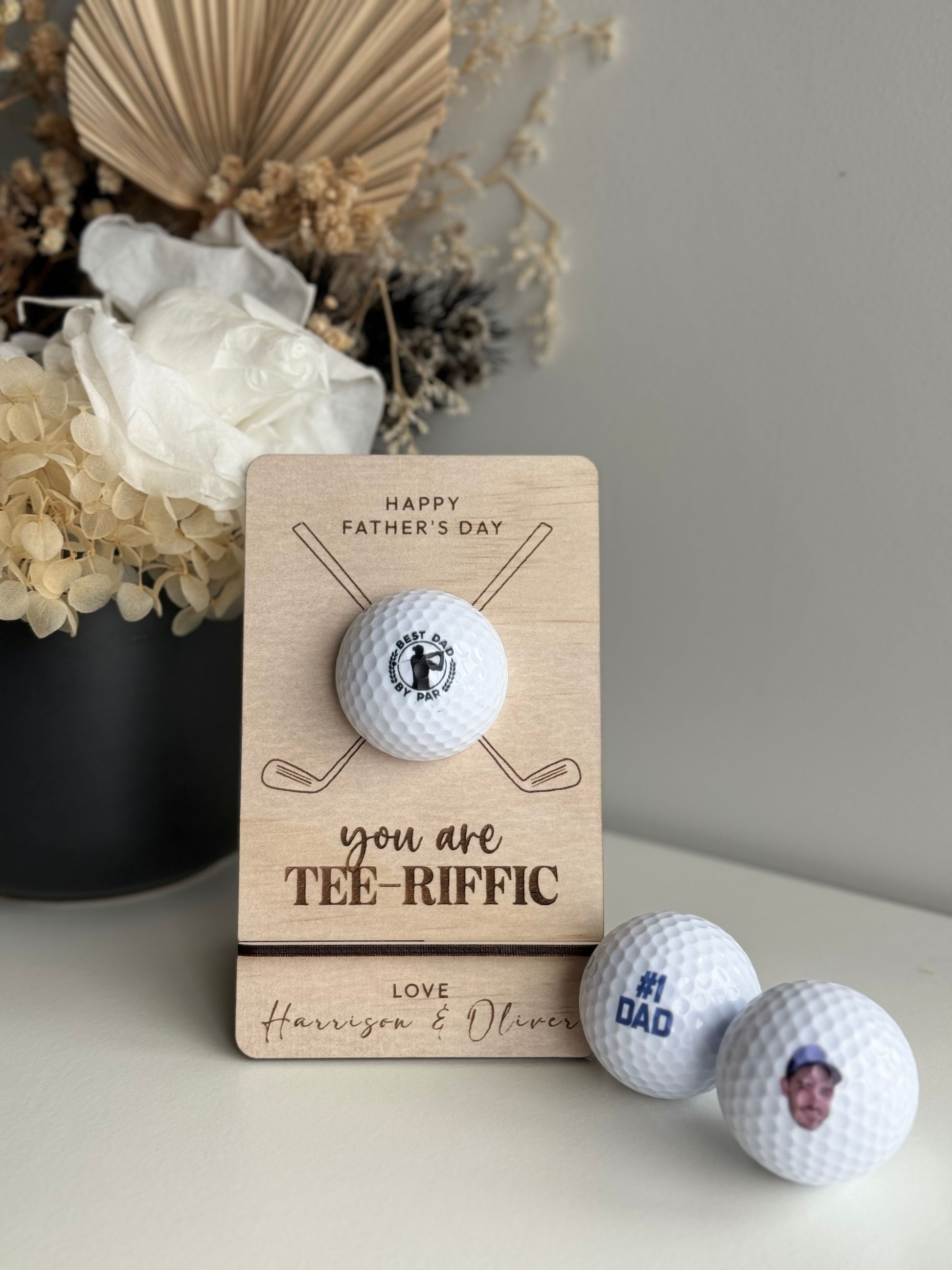 Our Father's Day custom golf ball with stand is the perfect gift for any golfer! Each stand holds one golf ball personalised with one of our three design options.