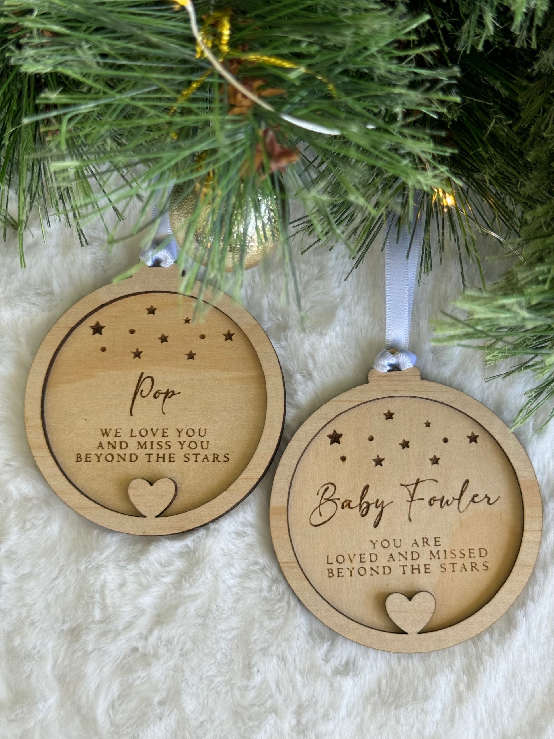 Honour and remember your loved ones who have passed away with our beautifully crafted Memorial Ornaments. Each ornament is a heartfelt tribute, featuring intricate laser engraving. These ornaments serve as a meaningful way to celebrate the lives and love shared with those who will forever hold a special place in your heart.
